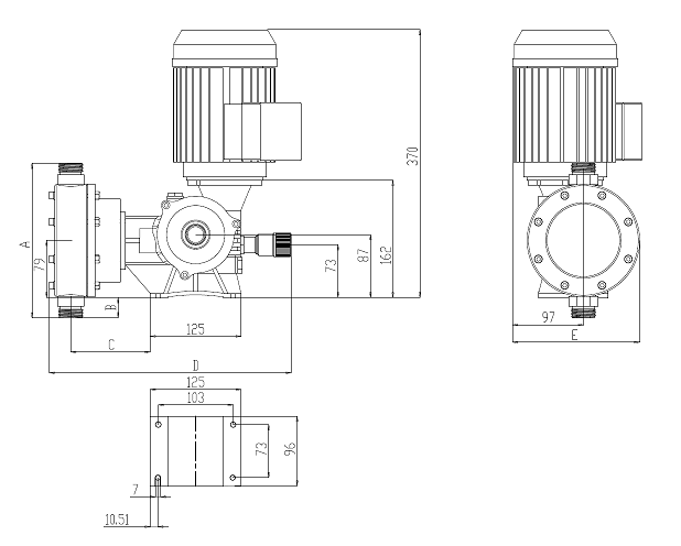 當推桿拉動膜片往后運動時,膜片與泵頭之間容積增加,產生負壓,吸入管路的單向閥打開,進口管路中的介質進入泵頭腔體內,當吸入沖程結束,隔膜運動瞬間停止,泵頭內壓力與進口管內壓力平衡,吸入口單向閥復位。在排出沖程時,與滑桿連接的膜片向前運動,泵頭內壓力立刻升高,當泵頭壓力高于出口壓力時打開出口單向閥,泵頭內的介質進入排出管路,當排出沖程結束時,膜片運動再次停止,泵頭內的壓力與出口壓力相等,出口單向閥復位,然后進入下一個循環(huán),從而形成液體以脈沖形式的傳輸。轉動沖程調節(jié)桿,調節(jié)桿向箱體內旋轉進給或遠離,使得推桿行進的距離相應的減小或增大,從而調節(jié)沖程的大小,最終達到改變沖程調節(jié)流量的目的。